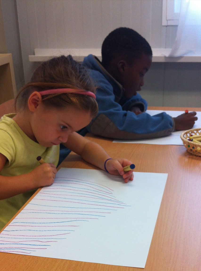 El dibuix, és un traç en moviment. Fluir sobre el paper amb les ceres o els llapis, controlant la línia recta i corba, és un repte que genera concentració i l’habilitat motriu fina.