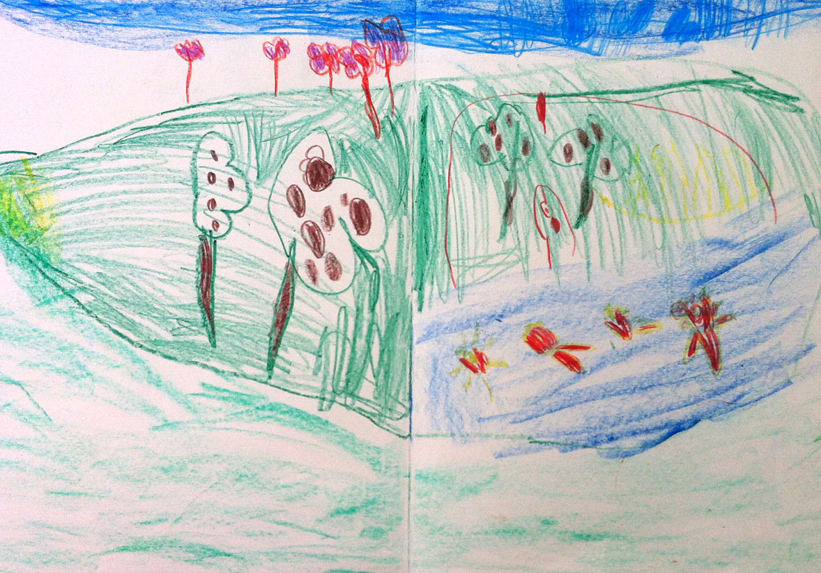 Sovint a classe expliquem un conte, creiem que són una font d’inspiració inesgotable! Amb materials senzills com ara ceres o llàpis de colors és suficient, per a representar de manera lliure, la imatge que ens hem fet de la història.